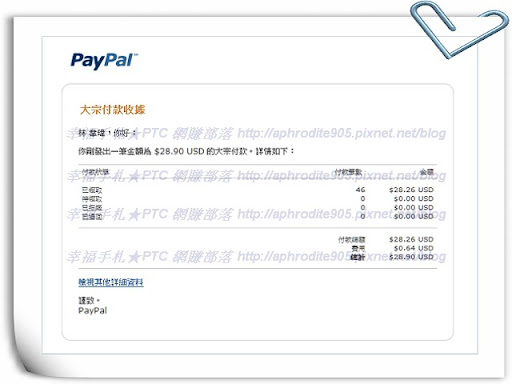 11/04 PtcLove $0.63美元已於下午3點21分送出請款囉!