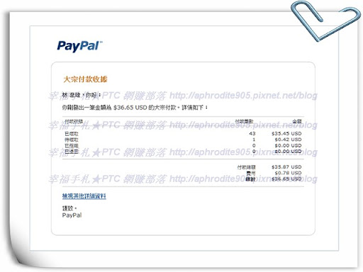 12/03 PtcLove $1.24美元已於下午2點38分送出請款囉!